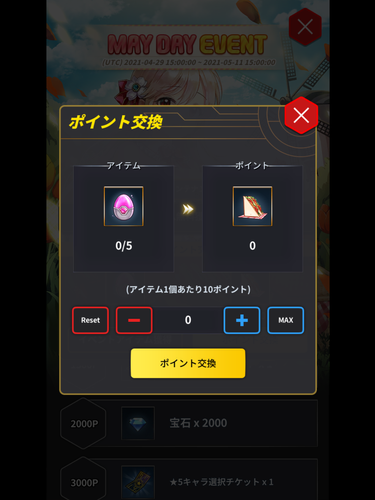 メーデーイベントではゲームをプレイして獲得したイベントアイテムとポイントを交換して、様々な報酬を獲得できます。