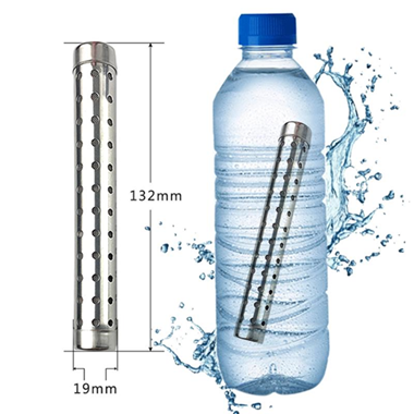 このMg化合物問題を解決し、安定して必要なMgイオンだけを水中に溶出できるのが「Mg+スティック」です。ペットボトルなどに入れておくだけで、推奨される1日30mg/Lのマグネシウムイオン水を飲用することが出来ます。ちなみに、水中に入れるだけで長期間、安定して多量のMgイオンを溶出させる技術は、水処理事業を手掛ける当社の特許技術を利用したもので、世界的にも他には見当たりません。