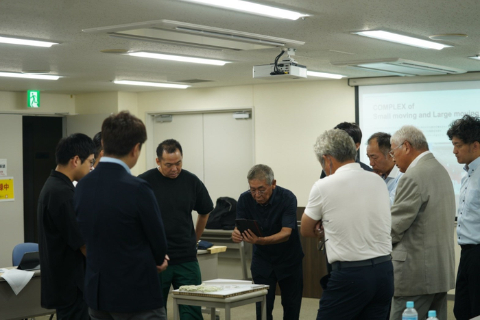 建築模型を中心に全体の配置や企画の確認を行うツキヒホールディングス(株)キムラ カズキ 氏