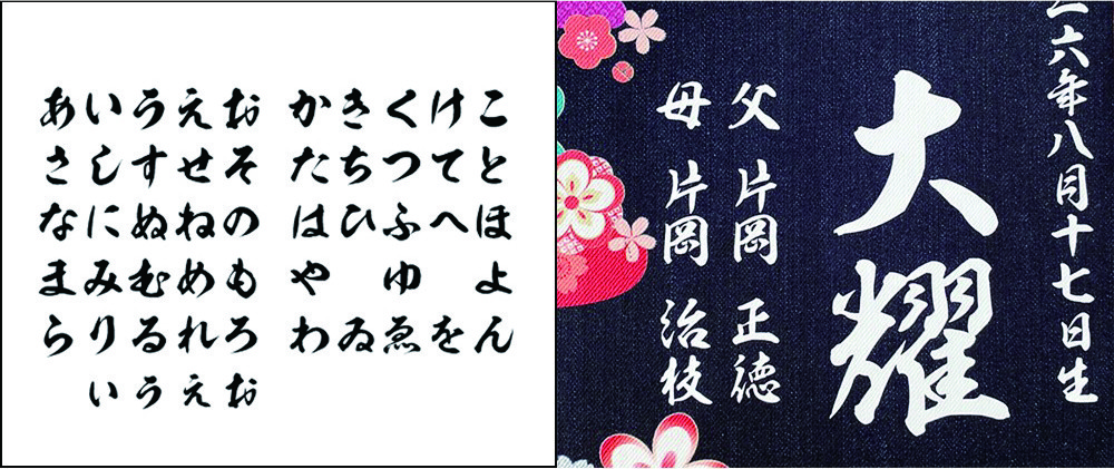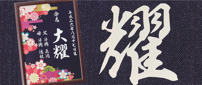 確かな品質を誇る岡山デニムの生地を使用した命名書です。