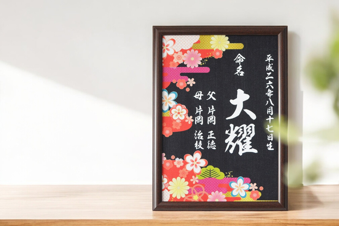 この命名書では、【昭和行書壱】フォントを採用しております。このフォントは、その流れるような筆記体が特徴で、柔らかさと力強さを兼ね備えています。昭和時代の趣を感じさせる独特のスタイルは、命名書に深みと歴史的な重みを加えるために選ばれました。親しみやすく、どこか懐かしさを感じさせるこのフォントは、特別な記念品にふさわしい選択となっています。