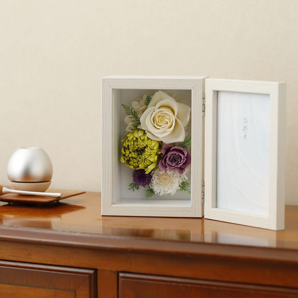 プリザーブドフラワーは、水やり不要で花粉や香りの心配もないため、仏壇やお部屋など、さまざまな場所に安心して飾れます。季節を問わず美しさを保つことから、仏花やお供え花の選択肢として定着しつつあります。