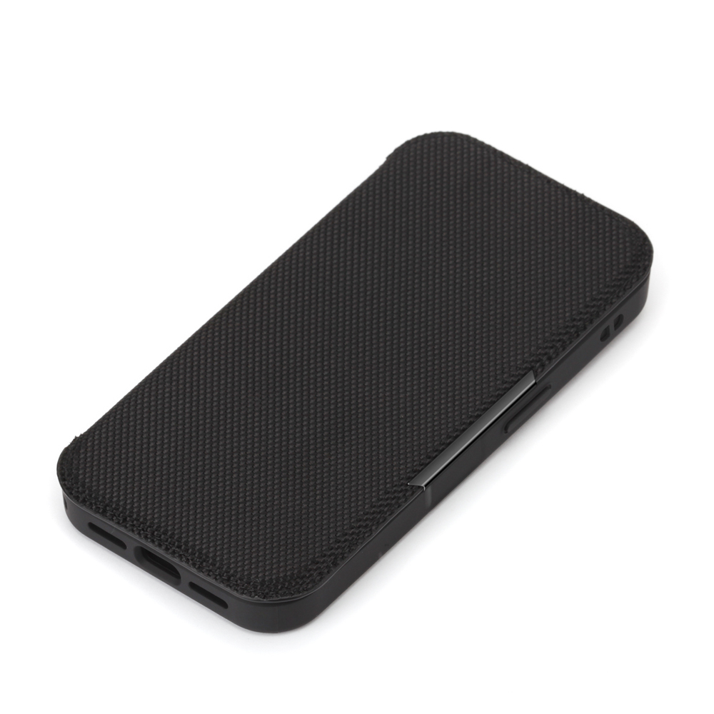 スタイリッシュなラウンドデザイン。耐久性に優れたナイロンメッシュ調のカバーでiPhoneの液晶画面をしっかり護ります。MIL規格(MIL-STD-810G)の2項目、落下・振動に準拠した試験をクリアしたタフ設計。ケースの内面はマグネットロック機能搭載でラクラクカバーを開閉することが可能。背面はクリアガラス仕様なのでシールや写真を入れて自分好みにカスタマイズすることが出来ます。通勤通学やお買い物に便利なカードポケット・お手持ちのストラップをつけて落下を防げるストラップホール付き。カバーを付けたままワイヤレス充電が可能です。[特許取得済み]