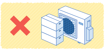 室外機の吹き出し口をふさいでいるとせっかくの省エネがムダになることも