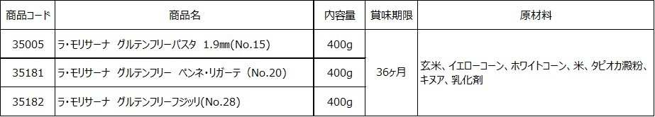 創業100年を超える老舗パスタメーカー ラ・モリサーナ社 グルテンフリーパスタ3種類 発売