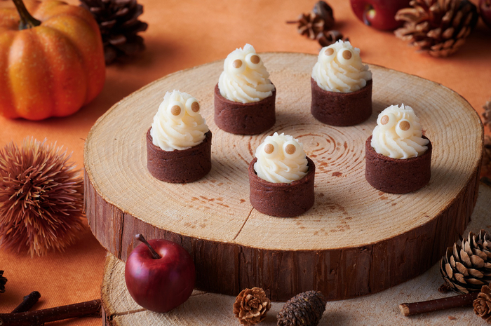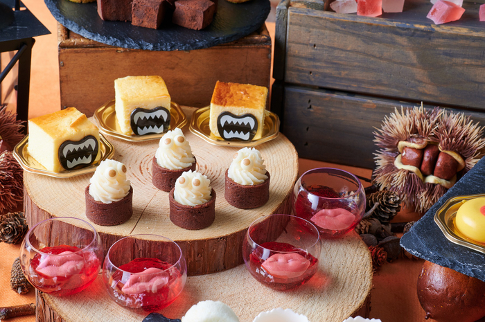 『おかしなお菓子のスイーツパーティー』は、オムライスにしか見えないマンゴームースやたこやきそっくりなシュークリーム、冷奴風のごまのムース、溶けない!?ソフトクリーム、食べられる宝石・琥珀糖など、本物“そっくり”なスイーツをお楽しみいただけるハロウィン・スイーツイベント。いたずら好きのおばけたちが1日間限定でアートグレイスに集結し、見た目と中身を“あべこべ”に入れ替えたスイーツは、お子様が楽しめることはもちろん、大人の遊び心もくすぐるクオリティ。お料理1皿とデザート2皿をお召し上がりいただいた後は、デザートワゴンがテーブルを回り、デザートのおかわりサービスを行います。ゆったりとした空間で、一味違ったハロウィン・スイーツをご堪能ください。