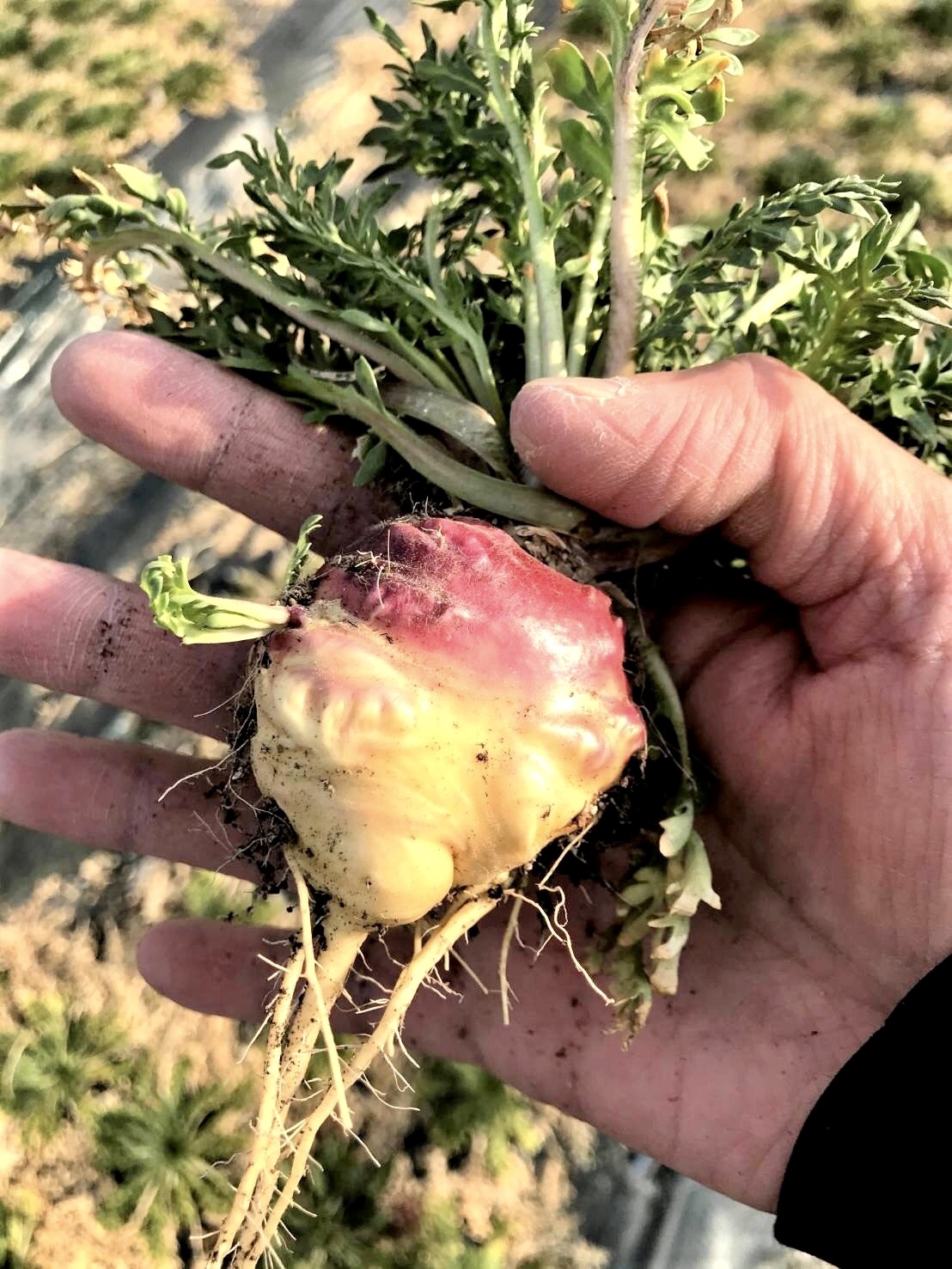 マカの生産は、日本では生産地域が限定されているなか、10年以上前から福島県で行われていました。しかし、東日本大震災の影響によりマカの販売が困難となってしまいました。そこでペルーの気候に似た北海道で生産できないかと模索し、北海道の契約農家が福島県の生産者から種を分けていただき、さらに数年の試行錯誤を経て、育成が難しいマカの生産にたどり着きました。国産マカ自体が非常に希少であり、さらに北海道産となるとより希少な逸品なのです。