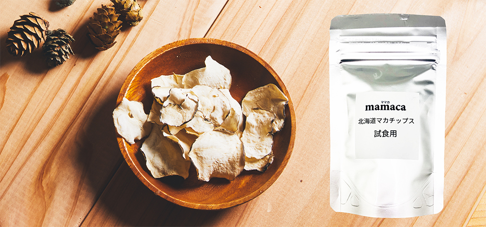 北海道産マカの加工品を製造している株式会社竹山( https://www.bellandorchid.com/campaign/mamaca/ )様よりマカチップスを試食させていただく機会があり、初めてマカが北海道でも生産されていることを知りました。その驚きとスーパーフードと言われるマカの高い栄養価を広く発信したいという想いをきっかけに、当商品の開発が始まりました。マカ自体まだまだ認知度が低く、どんな植物かを知らない方が多いと思いますので、当商品を通して“北海道産”マカの認知度向上を図りたいと考えております。