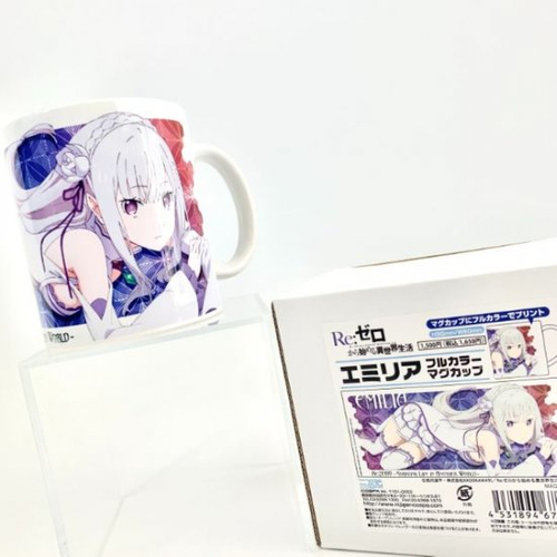 まずはエミリアたんのフルカラーマグカップ!しっかりとした箱に入っていて開けてみると…。見てください!この美麗な表情!綺麗な紫色の目もしっかりとプリントされていますよ♪