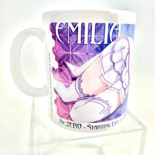ほぼ全身に近いイラストが描かれているので、ぐるっと見渡したいマグカップです。電子レンジ使用可であたたかい飲み物でホッと癒される。そしてエミリアたんで癒される…。そんなマグカップ♪