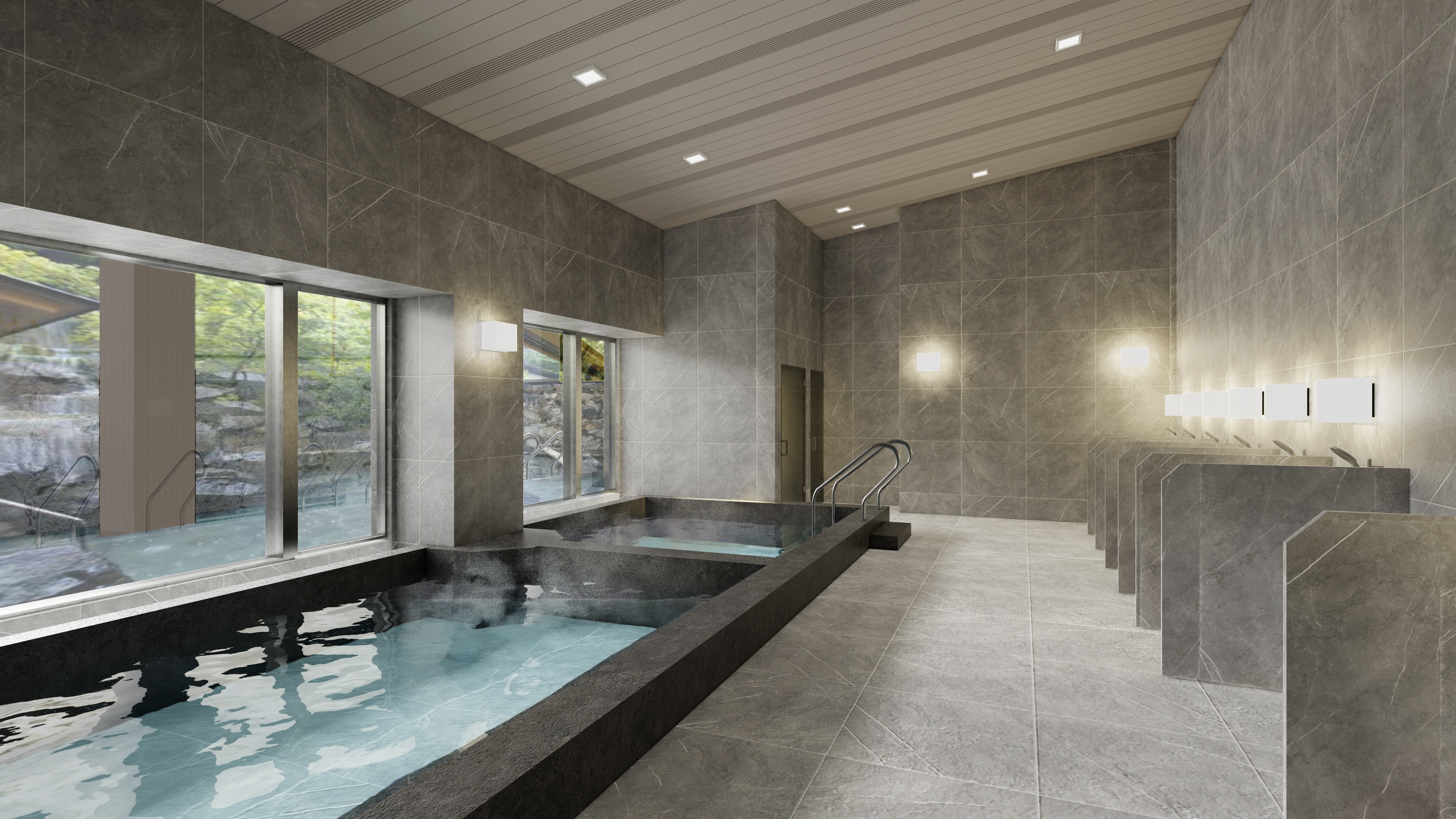 1.関西初(※1)となるホテルによるレストランサービス(「近鉄・都ホテルズ」が運営)・露天風呂付大浴場などの充実した共用施設や、関西初(※2)となる顔認証システム導入などの最新技術を完備。