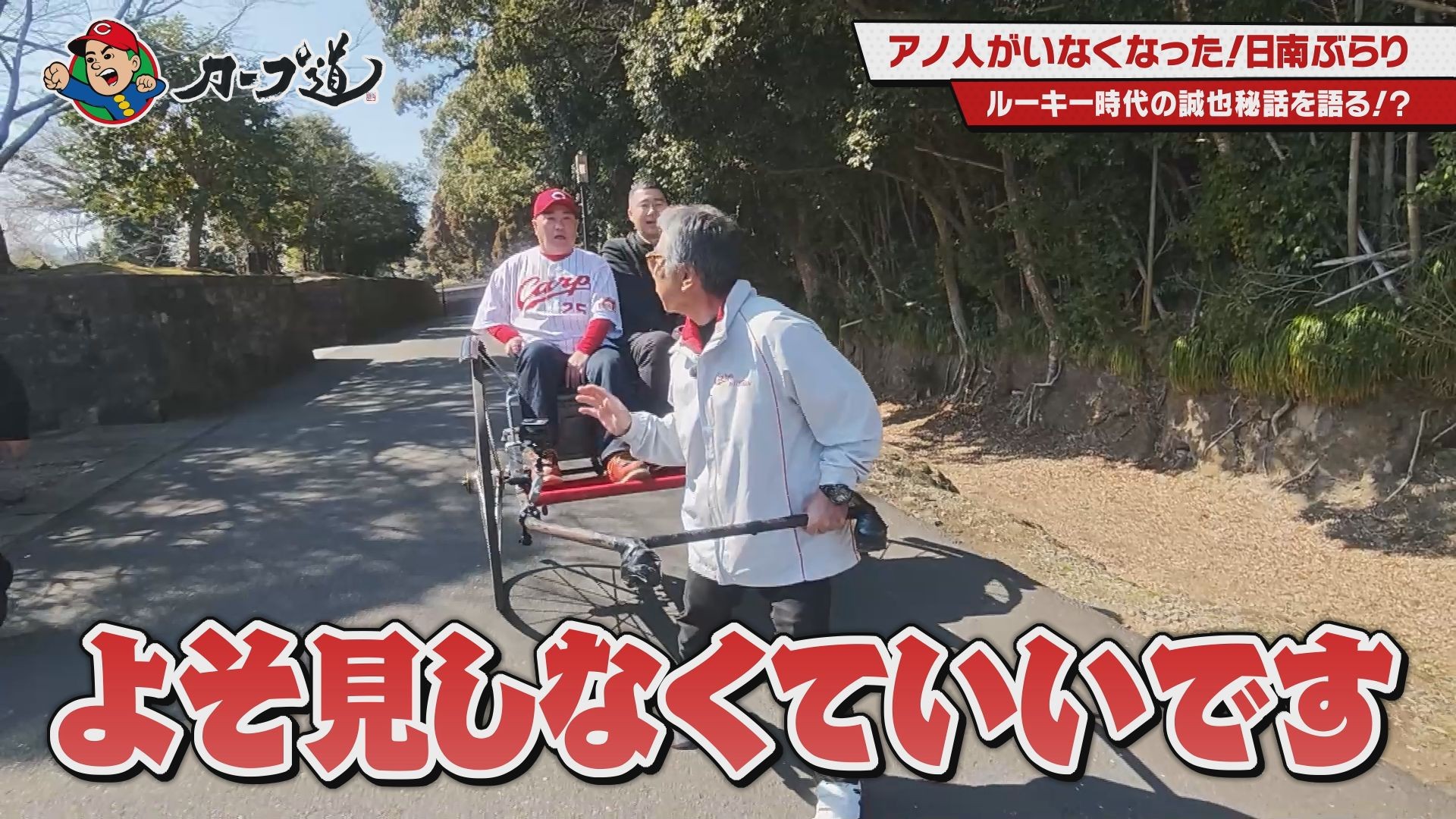 さらに、淳さんが熱望していた飫肥城へ。そこには、カープにゆかりのある人物が待っていた。城下町を人力車でめぐり、鈴木誠也選手のルーキー時代秘話を聞くことに…。飫肥で語った将来の夢とは?