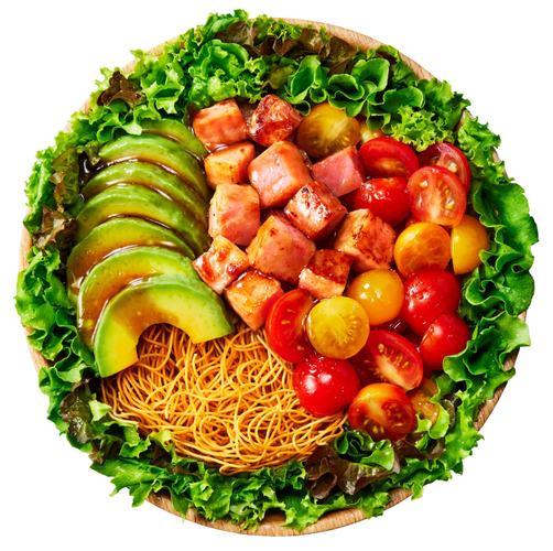 『サニーレタスがおいしい! 大人のパリ麺サラダ用セット』は、ソテーオニオン・ローストオニオンのコクのある旨みと微かな苦みの中に、トリュフがほのかに香る檸檬しょうゆ味の「ドレッシング」と、サニーレタスのおいしさを引き立てる香ばしくパリッとした食感の「揚げ麺」のセットです。サニーレタス、アボカド、ミニトマトなどの野菜に砕いた揚げ麺を混ぜ合わせ風味豊かなドレッシングを絡めれば、パリパリ食感が楽しいサラダが簡単に作れます。また、炒めたズッキーニやパプリカ、きのこ、ベーコンなどをトッピングすれば、爽やかな味とリッチな香りが具材を一層引き立て、ボリューム感のある華やかな盛り付けが食欲をそそる「グリル野菜の贅沢サラダ」も手軽に楽しめます。