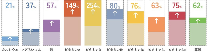 ※2 亜鉛、カルシウム、マグネシウム、ナイアシン、パントテン酸、V.A、V.B₁、V.B₂、V.B₆、V.B₁₂、V.C、V.D、V.E、葉酸