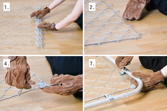 金網 1枚/金属線 4本(900×1200mmは長さ2種類)/シリコンチューブ 9個(予備1個含む)/金属線 ジョイント金具 8個/六角ボルト 16個/六角ナット 16個/六角スパナ 2本/フレーム 4本(900×1200mmは長さ2種類)/フレーム金具 12個/フレーム コーナー 4個/取扱説明書 1枚/ステッカー 1枚(おまけ)