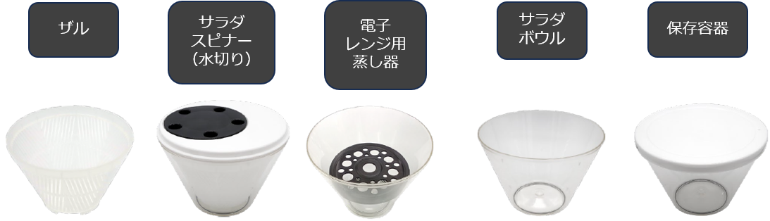 マルチスピナーは、野菜調理に必要な以下の5つの機能を1台に集約しました。