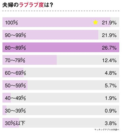 「夫婦のラブラブ度は100%」という人が、21.9%!
