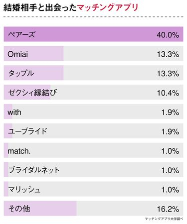 結婚相手と出会ったマッチングアプリは「ペアーズ」が最多