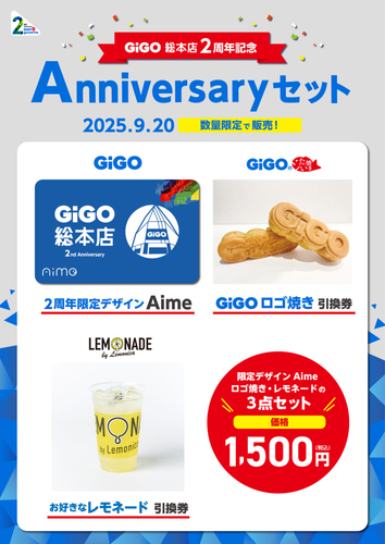 2025年9月20日(土)にオープン2周年を迎えるにあたり、同店では、「東日本のGiGOからエーススタッフ大集合!」をはじめ、記念グッズセットの販売やGiGOアプリ連動企画など、さまざまな記念イベントを企画しております。