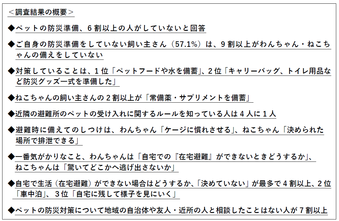 ~ペットの防災準備、6割以上の人がしていないと回答~