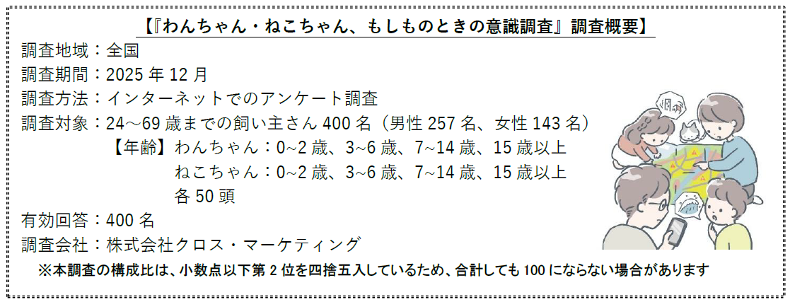大正製薬は、わんちゃん・ねこちゃんを飼っている全国の男女400人を対象に、災害対策について聞く『もしものときの意識調査』を実施しました。