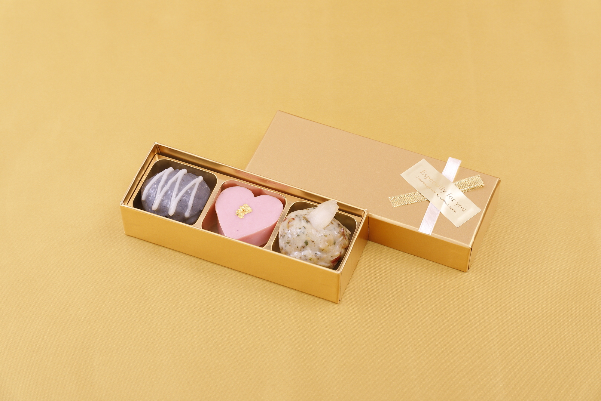 ちょっとしたプレゼントに気軽に使いやすいよう、3個入りと5個入りの2種類をご用意しています。
