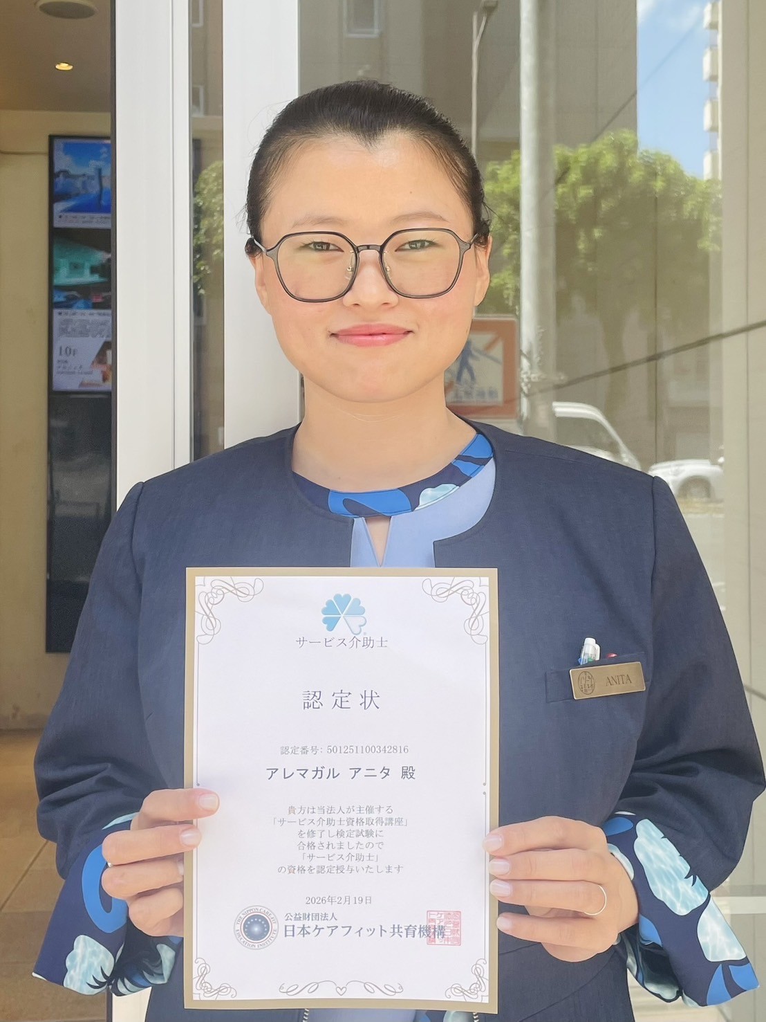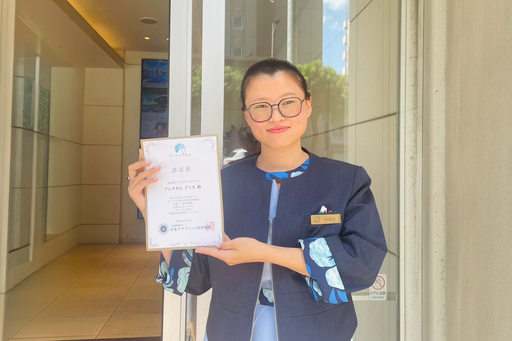 自社の講習費用貸与制度を活用し、ホテルアクアチッタナハに「サービス介助士」資格取得スタッフが誕生 すべてのお客様が安心して滞在できるホテルづくりへ