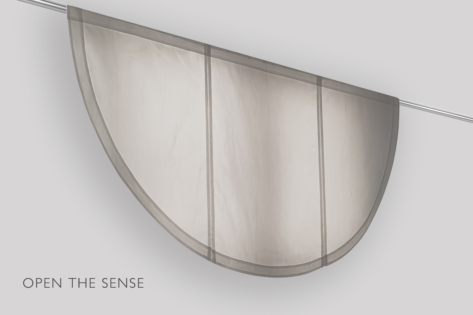 扇暖簾は半円形の曲線という独自形状で構成されています。