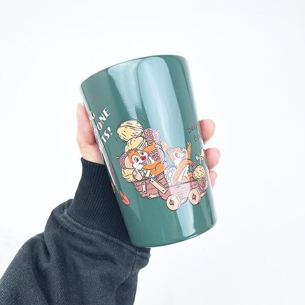森のようなグリーンがメインカラーとなった、チップとデールの **ステンレスタンブラー** です。