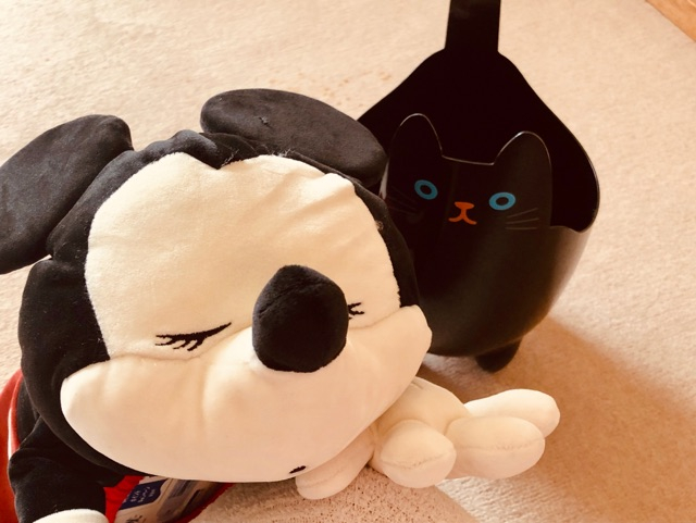 先ほどから辛そうな風邪を引いたミニーちゃんは実はティッシュカバー!猫ちゃんはゴミ箱なんです!