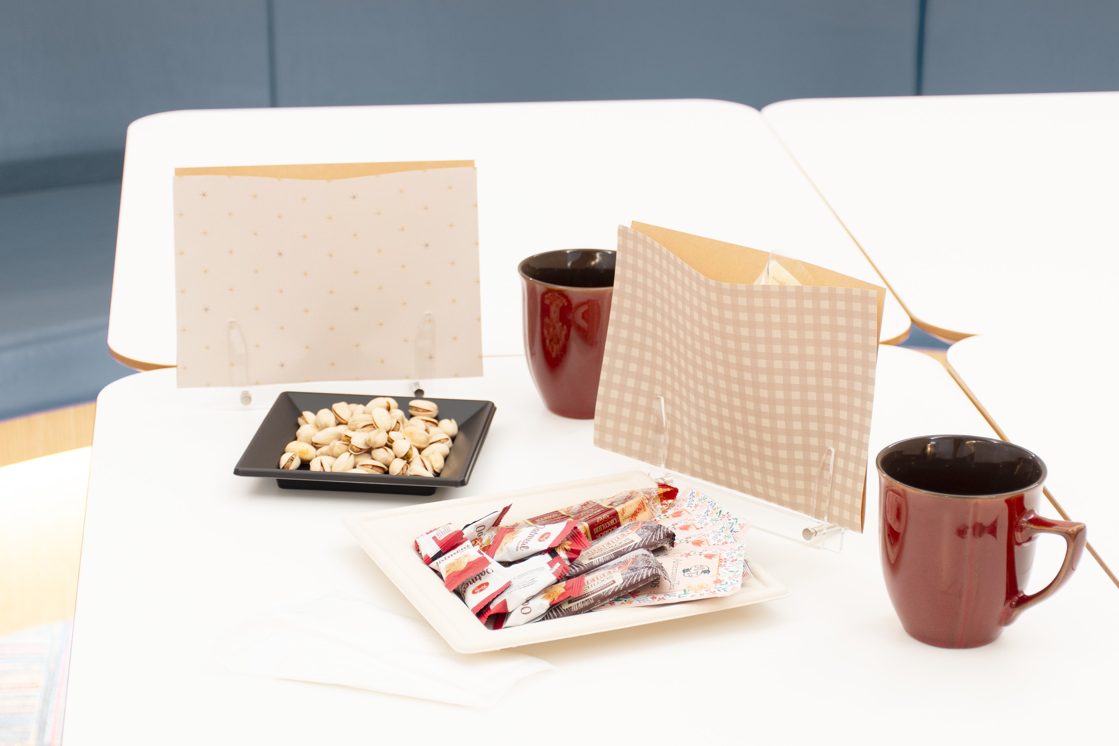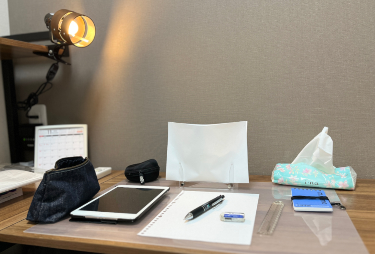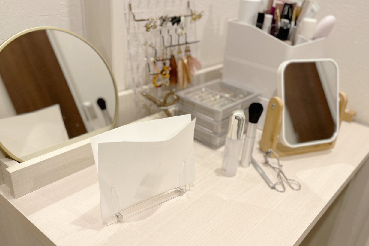 紙を折って紙箱を作るのは手間だけど、卓上ごみ入れスタンドなら紙を差し込むだけなので簡単に用意できます。