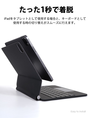 強力マグネットにより、iPadとキーボードを簡単に装着・分離できます。シーンに応じてタブレット⇔ノートPCを瞬時に切り替え可能です。