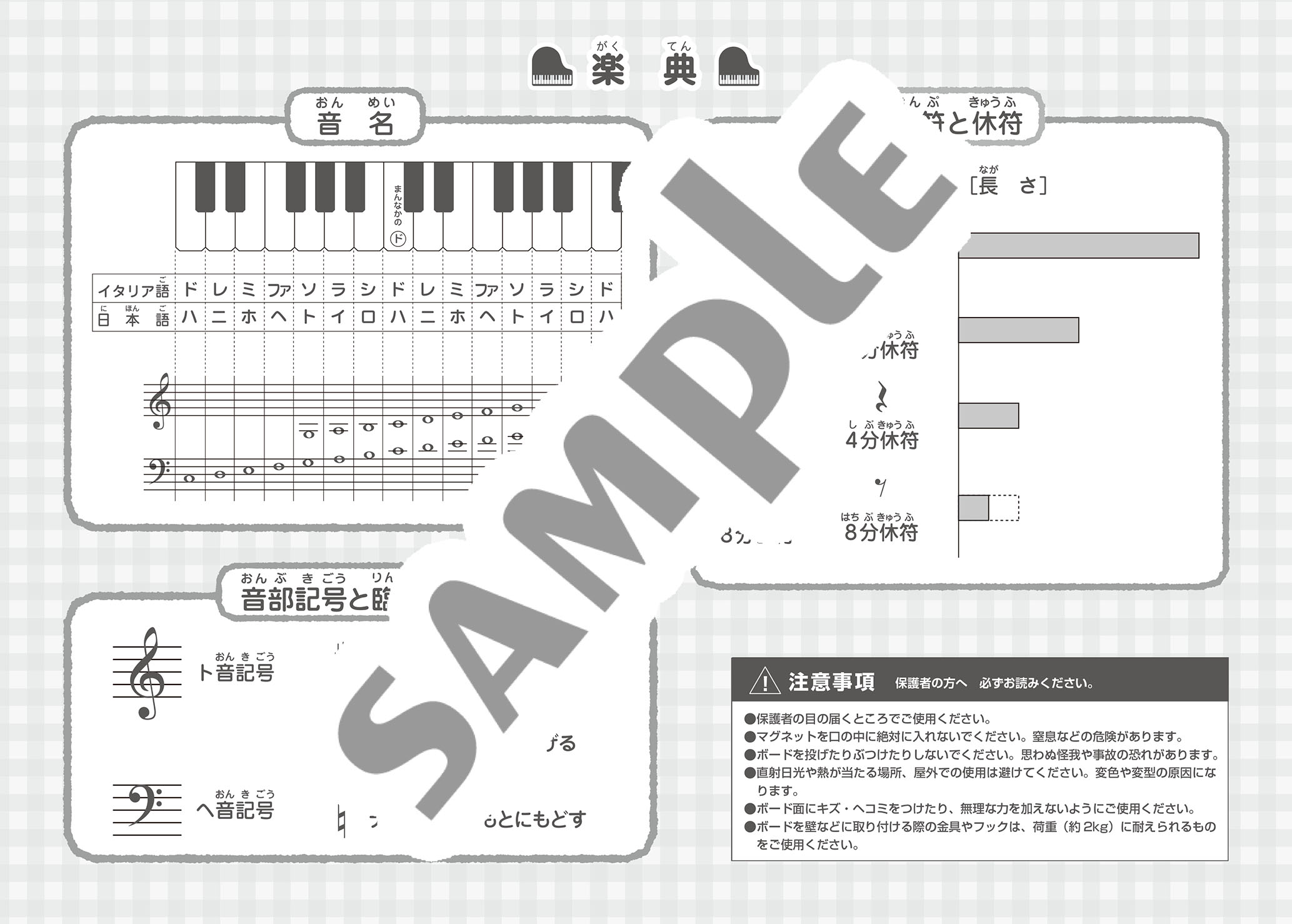 音符マグネットを使ってスケールや和音を作るなど、使い方は自由。市販のホワイトボード用マーカーも使えます。小さなお子様の楽譜の学習におすすめしたいアイテムです。