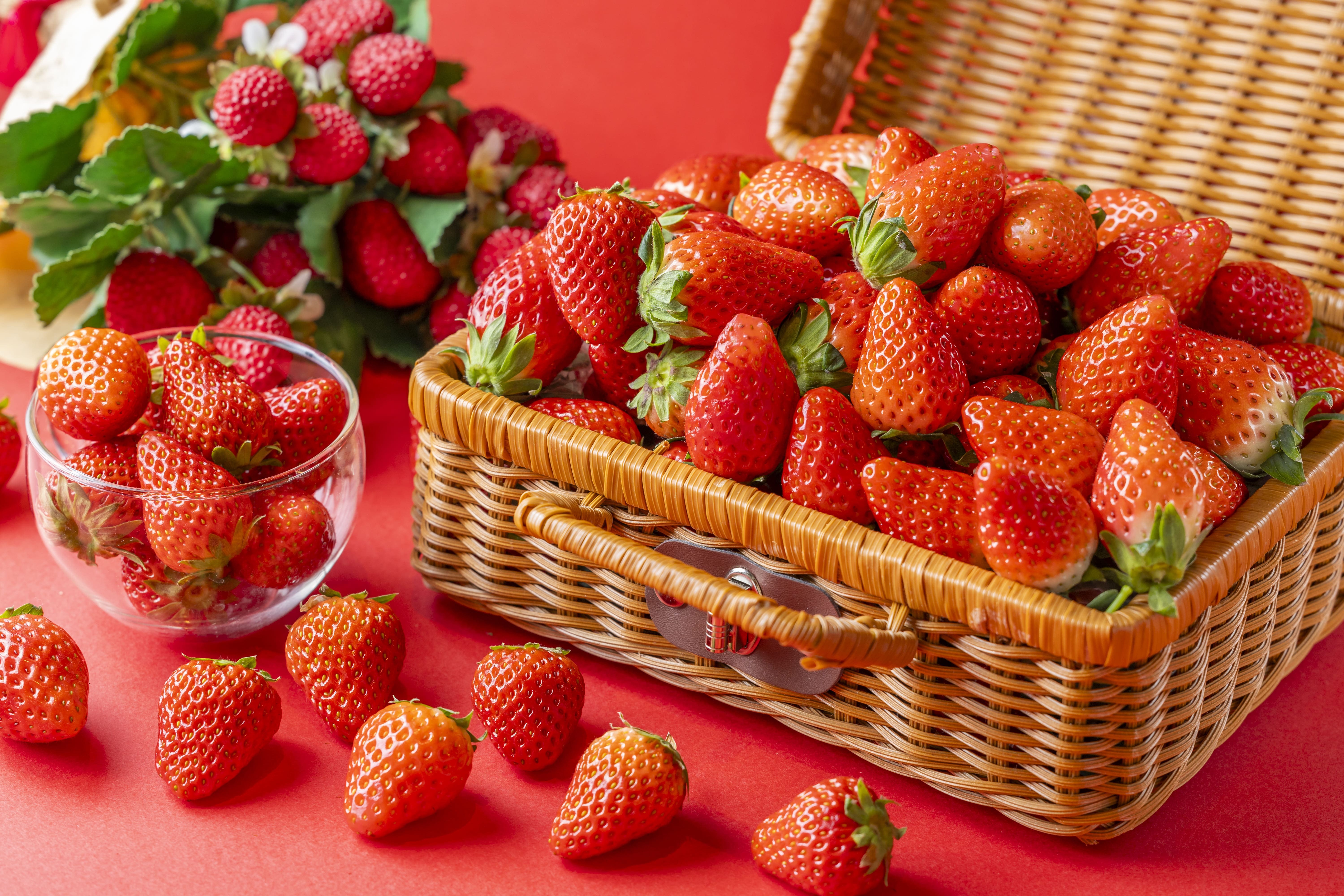 いちご本来の甘酸っぱさを味わえる、果肉まで鮮やかな紅色が特徴の美しいツヤのあるいちご。