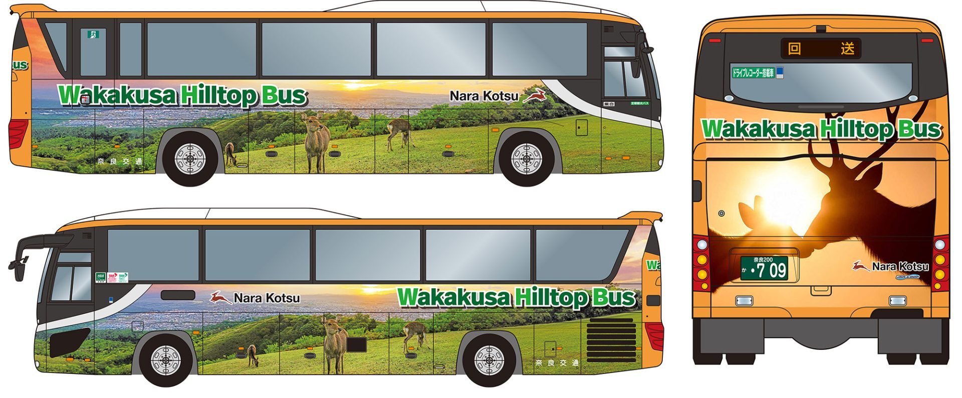 「Wakakusa Hilltop Bus」専用のラッピングバスで運行