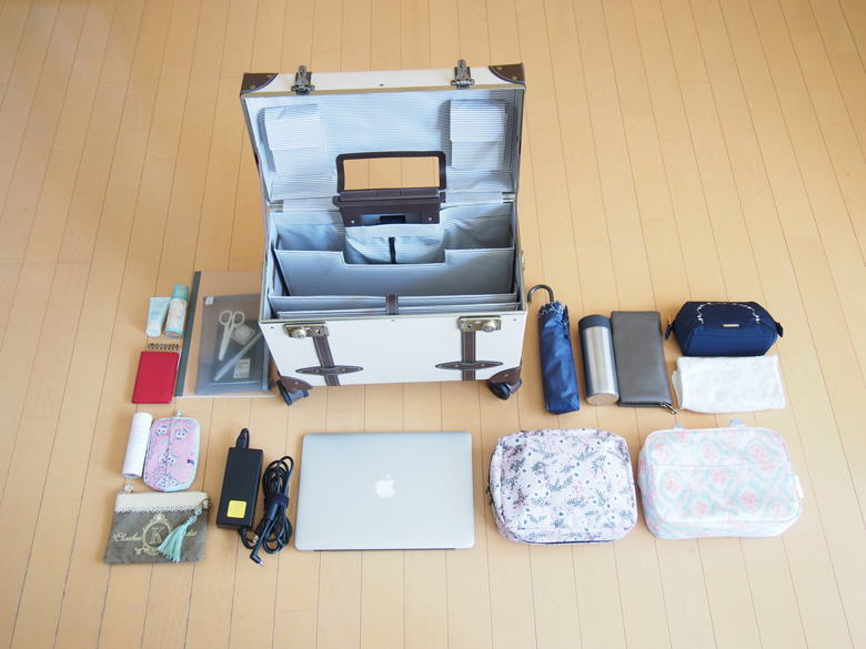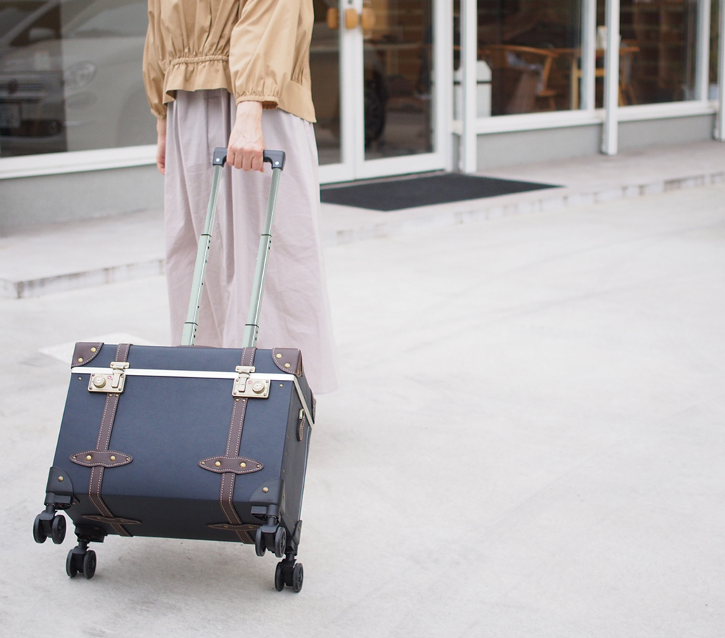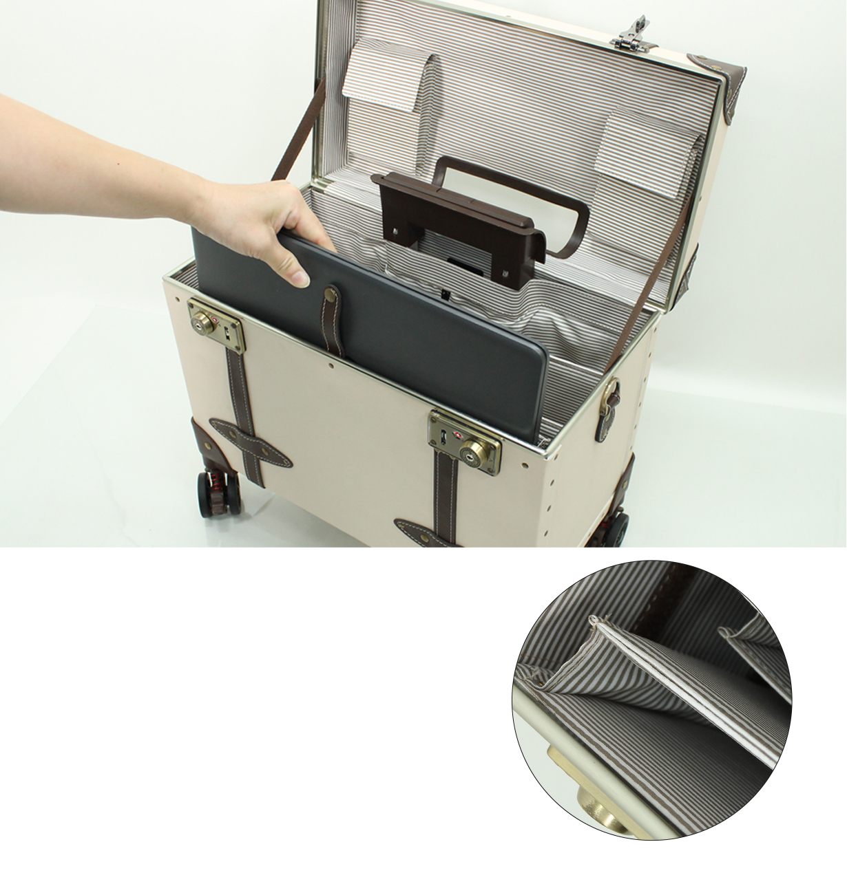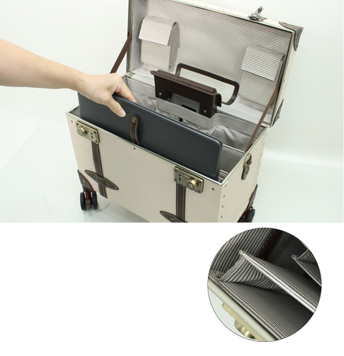 トップオープンと可動式の仕切りで荷物をスマートに出し入れできるトランクキャリーケース。