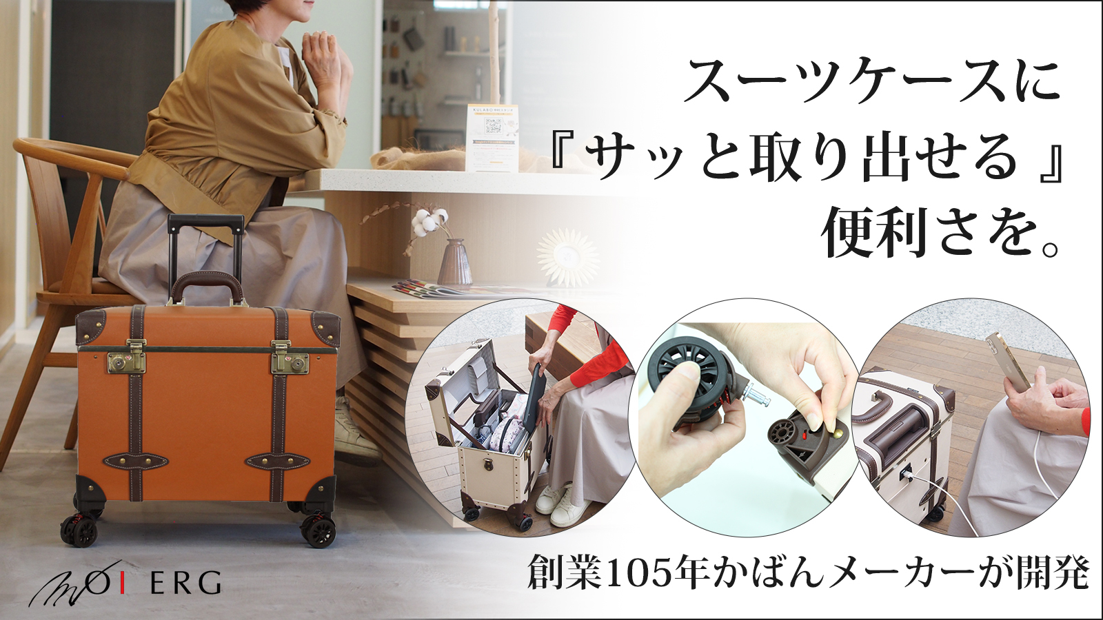 創業当時から取り扱っているトランクケースを元にお客様の要望からヒントを頂き、外でケースを倒すことなくそのまま荷物を出し入れできるケースの開発に挑戦。また、ファッションバッグを取り扱っている当社ならではのオシャレでスマートなデザインと機能を携えたケースを5年もの歳月をかけて完成に至りました。今回5色の展開でMakuakeにて先行予約販売を開始します。