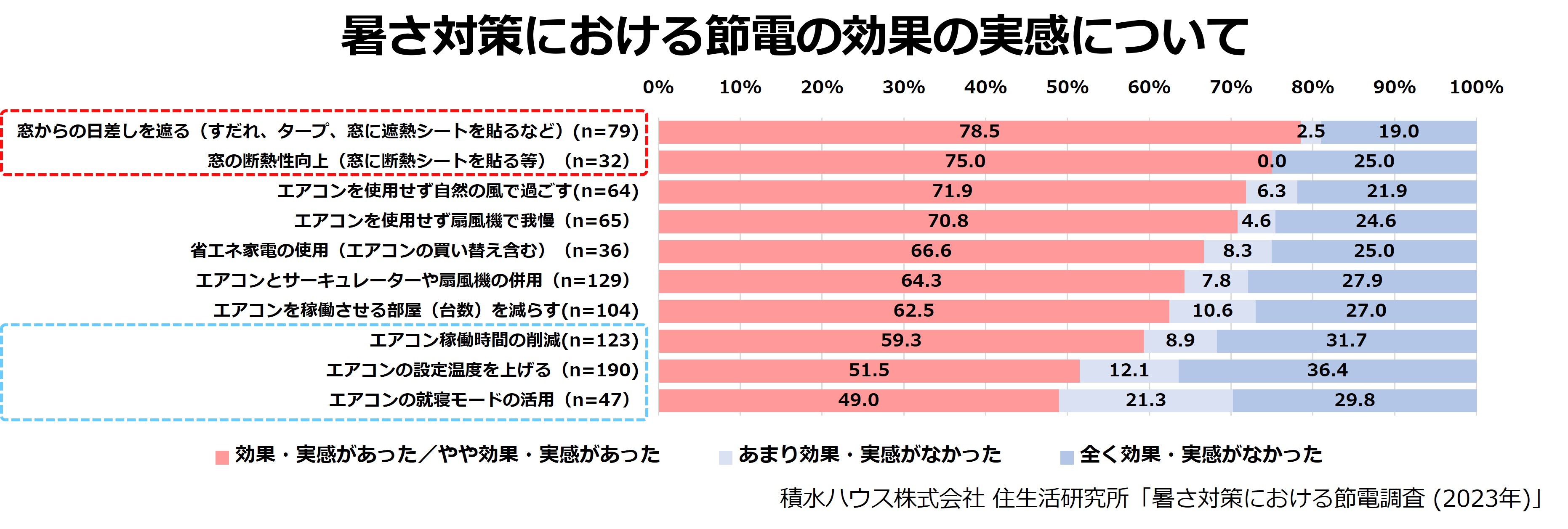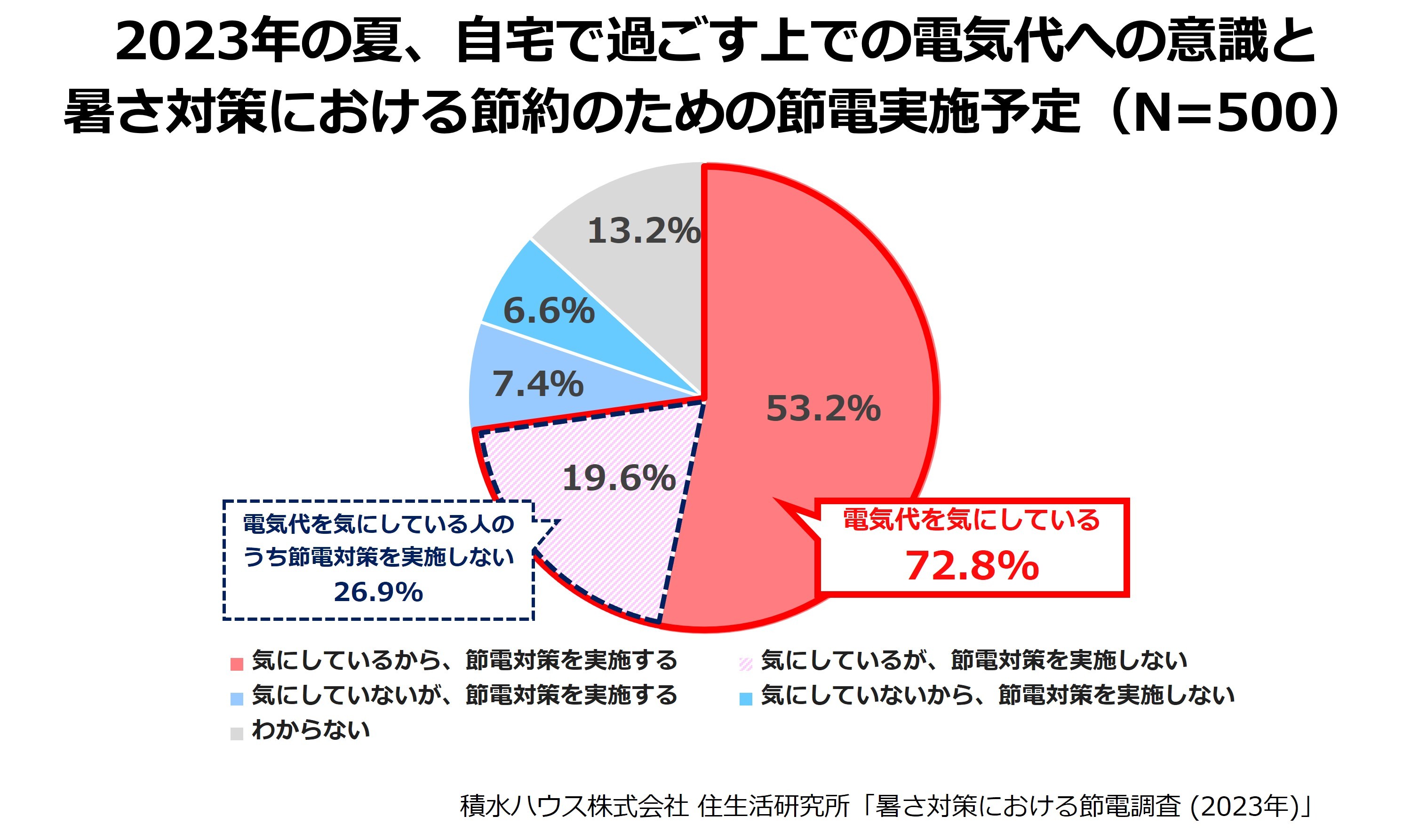 ・引用元が「積水ハウス株式会社 住生活研究所」による調査である旨と、引用元調査「暑さ対策における節電調査 (2023年)」の記載をお願いします。