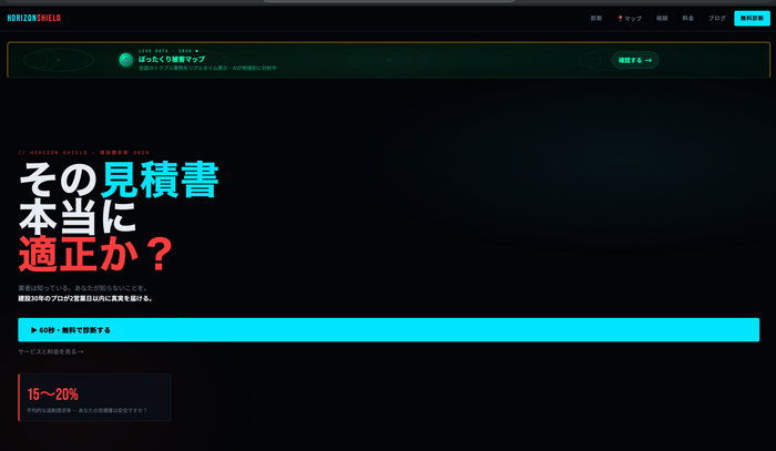 【日本初】業者が来る前に適正価格が分かる「逆見積もり診断」をAIで実現——HORIZON SHIELDが新サービスを提供開始