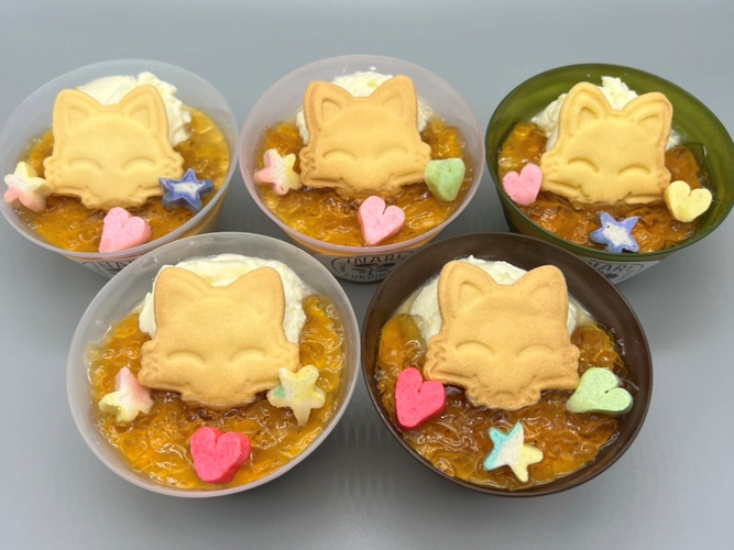 浅草本店では、こだわりの味だけでなく、見た目でも楽しんでいただきたく米粉で作った塩味の「キツネクッキー」を添えた冷製茶碗蒸しを販売しています。茶碗蒸しの上にのせたゆず風味の豆乳クリームや茶碗蒸しに「キツネクッキー」をディップしてお召し上がりください!