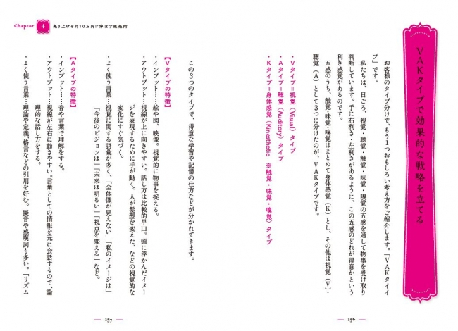 さらに、自身のタイプ別の効果的の戦略の立て方や、お客様のタイプ別のアプローチ方法など、具体的なノウハウも満載。女性の、女性による、女性のための1冊です。