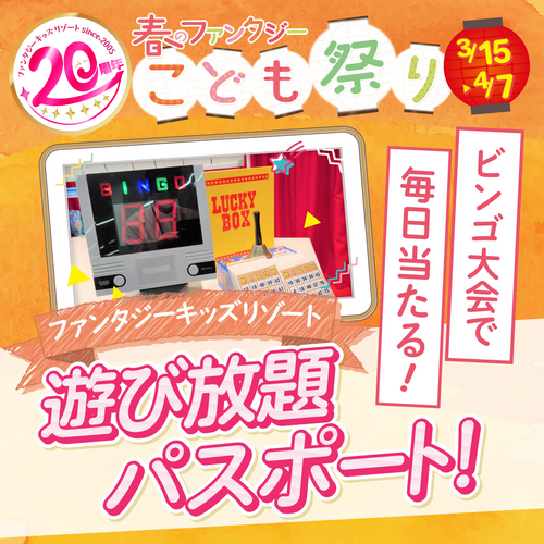 この記念すべき企画の第一弾として、3月15日(土)より、「春のファンタジーこども祭り」を全国のファンタジーキッズリゾート店舗にて開始することが決定いたしました。