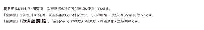 事業内容:空調服®及び関連商品の企画・販売 空調ヘルメット®の販売 空調ベッド®の販売 どこでも座クール®の販売