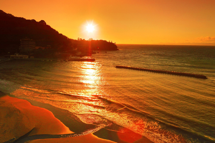 駿河湾を一望できる海の見える大浴場をご利用いただけます。夕刻になれば、黄金色に染まる景色を眺めながら温泉体験が可能です。(季節・天候・時間により景色は異なります)