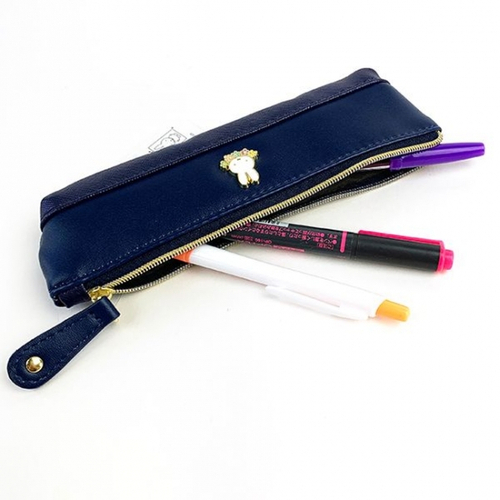 細ペンケース。幾多のアイテムで磨かれた形状のペンケースに贅沢な生地を使って、ワンポイントでピッと仕上げてます。軽くて便利です。