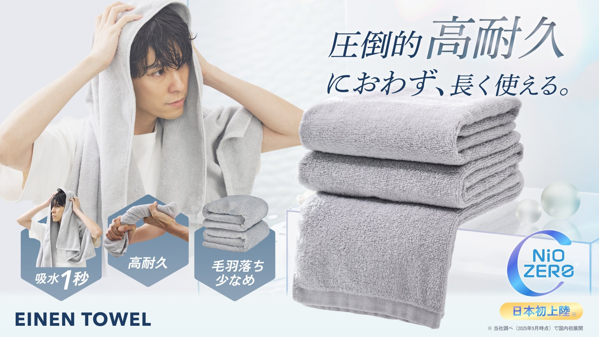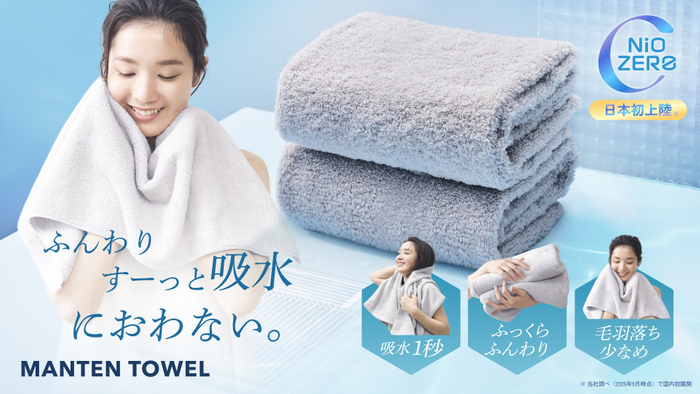 株式会社KURUKURU(本社:東京都中央区銀座、代表取締役:関沢康寛)は、薬剤不使用でニオイ菌を99.9%(*1)抑制する **「NioZero®抗菌技術」** を搭載した新ブランド **「MUNIO(ムニオ)」** を立ち上げました。第一弾として **「MANTEN TOWEL」** 、 **「EINEN TOWEL」** 、 **「ONSOKU TOWEL」** の3商品を2025年11月5日より販売開始いたします。“清潔”がつづく、タオルの新常識を作っていきます。