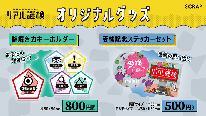 全世界で累計1,300万人以上を動員しているリアル脱出ゲームを企画制作する株式会社SCRAP(本社:東京都渋谷区、代表:加藤隆生)は、謎解き能力検定実技 『リアル謎検』のオリジナルグッズを公開いたします。