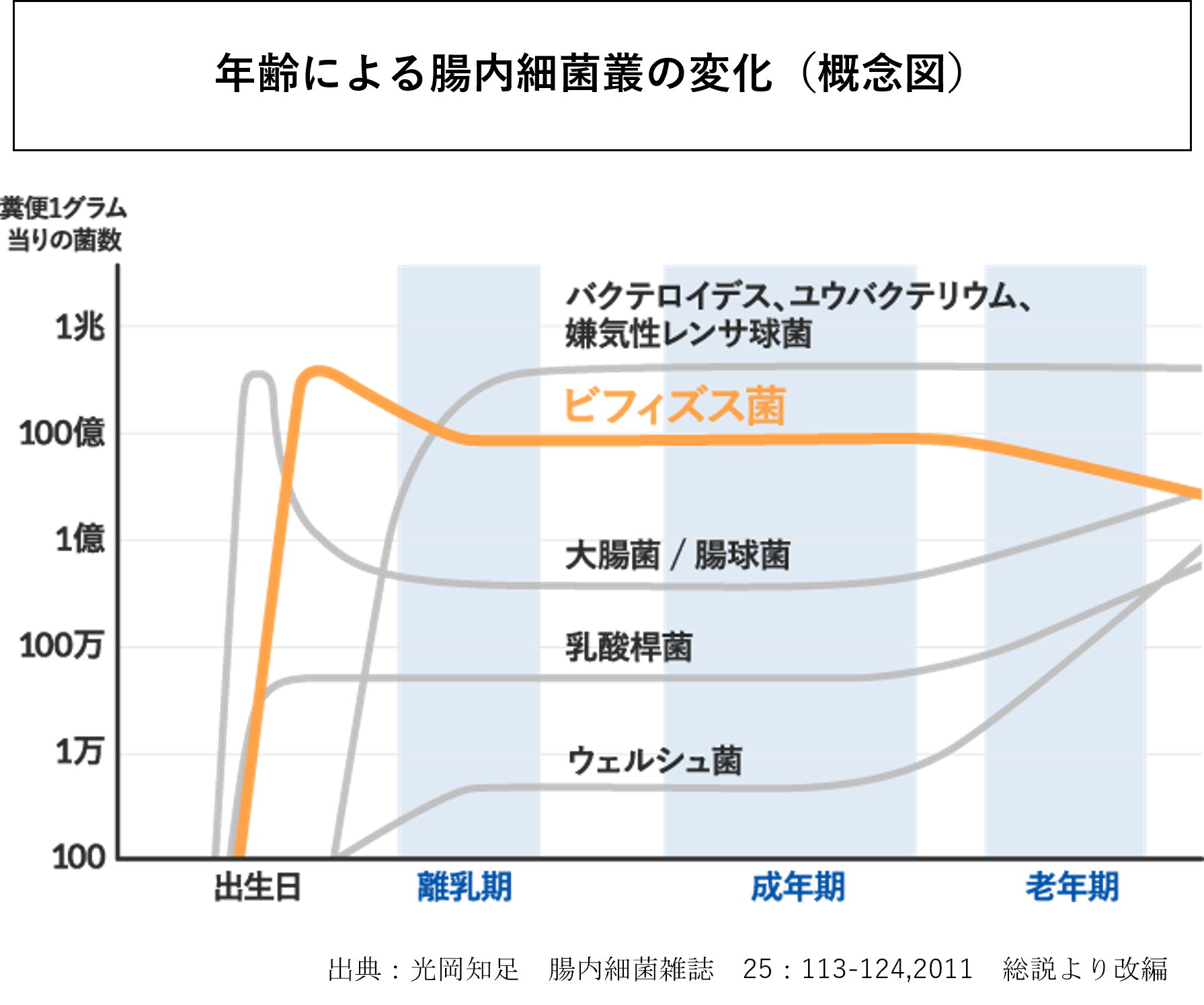 ちなみにビフィズス菌は、乳児の頃は腸内細菌の大半を占めていますが、大人と同じ食事を摂るようになると全体の1~2割程度に落ち着いていきます。その後、成年期を過ぎ老年期になるとビフィズス菌は一層少なくなります。老年期の方の10人中3人はビフィズス菌がまったくいない状態といわれています。クリニックに来る若い方でも、極端なダイエットによって痩せている女性は、ビフィズス菌がかなり減少している方がいます。女性は、女性ホルモンが減ることに対しては敏感ですが、ビフィズス菌が減っていくことに対しても、そこに若さと健康の秘訣があるのではないかと関心を持ってもらえると良いと思います。