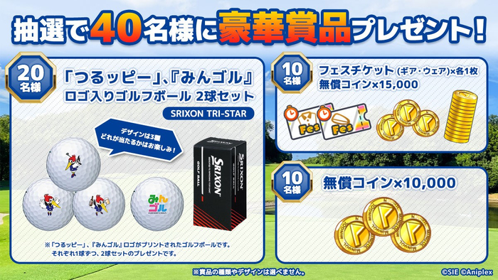 また、本コラボイベントの開催を記念して、つるやゴルフ公式Xでは、つるやゴルフマスコットキャラクター「つるッピー」や『みんゴル』ロゴがプリントされたゴルフボール2球セット、さらにゲーム内アイテムが抽選で当たるプレゼントキャンペーンも同時開催いたします。