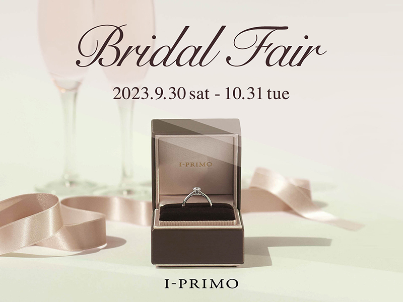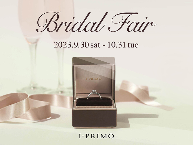 ブライダルジュエリーの企画・販売を行うプリモグローバルホールディングス株式会社が運営するブライダルリング専門店「I-PRIMO(アイプリモ)」では、2023年9月30日(土)~10月31日(火)の期間、『Bridal Fair』を開催いたします。この時期、厳選された特別なダイヤモンドを数多く取り揃え、豊富なデザインバリエーションの中からお選びいただくことができます。またフェア期間中、アイプリモ全店舗及びオンラインストアにてブライダルリングをご購入いただいたお客様に、「撮影用オリジナルシート」をプレゼント。指輪とともに撮影し、婚約や結婚などのおふたりの門出に思い出のお写真を残しませんか。ぜひ、この機会にお近くの店舗にてお気軽にご相談ください。